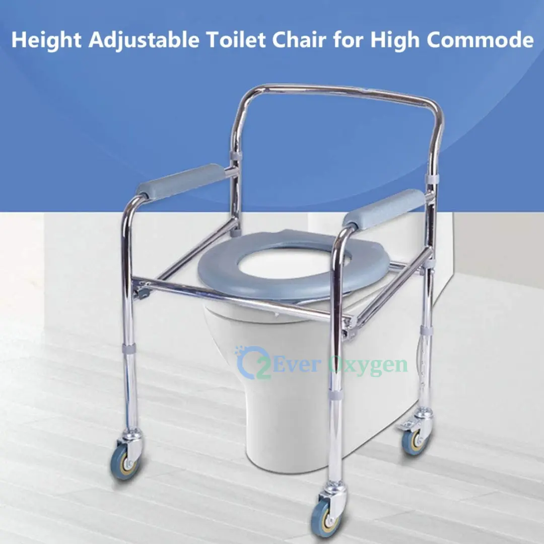 Foldable Commode Chair Height Adjustable Potty Toilet Seat – with Wheels